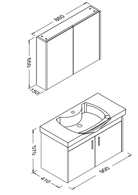 Gama 90 cm Basin Unit-86 cm Mirror Unit